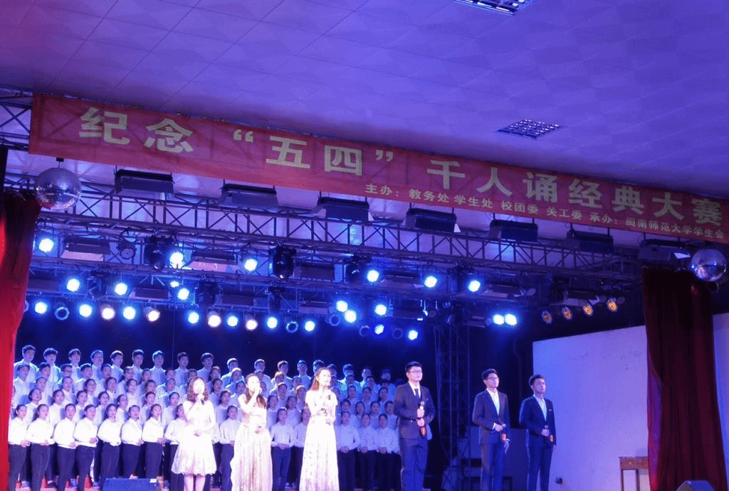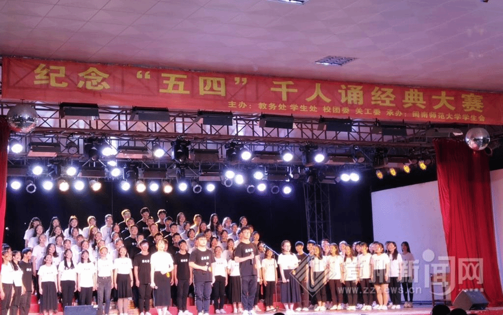 漳州新闻网讯(记者 周媛婷 通讯员 徐廷巧 黄淑媛)13支参赛队伍,每支队伍100余人,1300多人参与诵读……4月27日晚上,闽南师范大学纪念五四运动100周年“百人团千人诵”活动在校龙文馆举行。本次活动的主题是“弘扬五四精神,励志民族复兴”,每支参赛队伍选择一篇纪念五四运动的作品进行诵读。在诵读过程中,同学们还加入舞蹈、短剧、歌曲等创新性元素,使诵读活动更具观赏性。