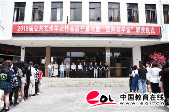 中国教育在线讯 5月15日,闽南师大艺术学院在学院展厅举办2019届公共艺术毕业设计展暨“国辉奖学金”颁奖仪式。校党委常委、副校长林致远,漳州市科技局副局长何朱龙,福建国辉工贸集团总经理杨海通等出席活动,并为“国辉奖学金”第一批获奖学生颁发证书及奖金。