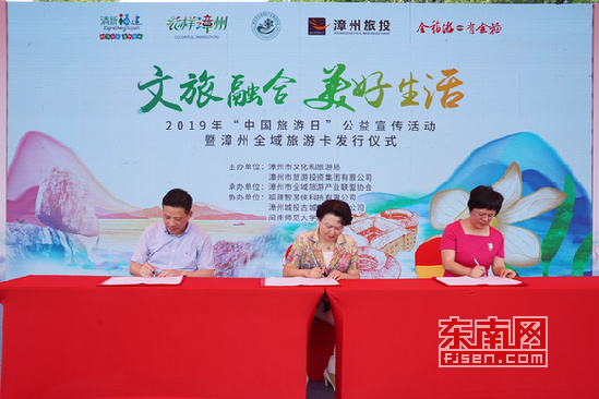 活动现场,漳州市文旅局和漳州旅投集团、闽南师范大学签订全域旅游战略合作框架协议,并举行大学生文化旅游志愿者服务队授旗仪式、为工会代表、劳模代表赠卡仪式。此外,中国旅游日活动期间,漳州各旅游企业纷纷推出活动和惠民措施,其中包括国际博物馆日系列活动,龙海市、漳州开发区杨梅文化节,南靖土楼、华安土楼、官畲村等门票优惠或免费开放,对特殊群体公益性优惠开放等,体现旅游公益惠民,以此迎接市民朋友及外地游客到漳州休闲旅游,乐享初夏生活。