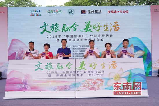 东南网漳州5月19日讯(本网记者 陈惠华 通讯员 陈政虹 杨滨平)5月19日上午,为庆祝中国旅游日,漳州市文化和旅游局在漳州古城举办“文旅融合·美好生活”——2019年中国旅游日公益宣传活动暨漳州全域旅游卡发行仪式。闽南师范大学党委书记吴彬镪、漳州市人民政府副市长兰万安,闽南师范大学党委常委、副校长蒋一婷,漳州市文化和旅游局、漳州市旅投集团领导出席活动。