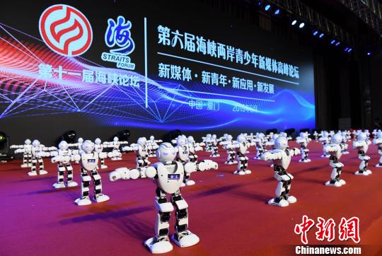 本届论坛广泛应用新技术新手段,吸引两岸青少年体验参与。论坛开幕式上,在科技感十足的灯光特效带动下,80台机器人随着激情昂扬的旋律一齐舞动,开场迎接嘉宾。现场还通过展示AI合成主播、VR/AR等技术,设置机器人互动专区等,让与会人员尤其是台湾青少年,深植科技强国、信息强国的理念,共同见证新中国70年发展成就。