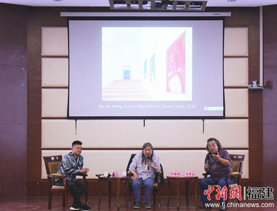 中新网福建新闻11月15日电 (刘北一 沈瑞芳)14日,著名欧洲当代艺术家严培明莅临漳州参加由闽南师范大学艺术学院举办的“时代•新潮——当代油画创作风格与内涵表现”主题论坛。著名当代艺术家、中国雕塑学会常务理事陈志光,国家一级美术师、著名油画家王申生作为嘉宾,与严培明一起畅谈艺术与人生、艺术创作经历与思考、艺术展览感悟。闽南师范大学党委书记吴彬镪及闽南师大艺术学院的师生,四川美院、西安美院、鲁迅艺术学院等高校的师生和校内外的艺术爱好者200余人参加了论坛。