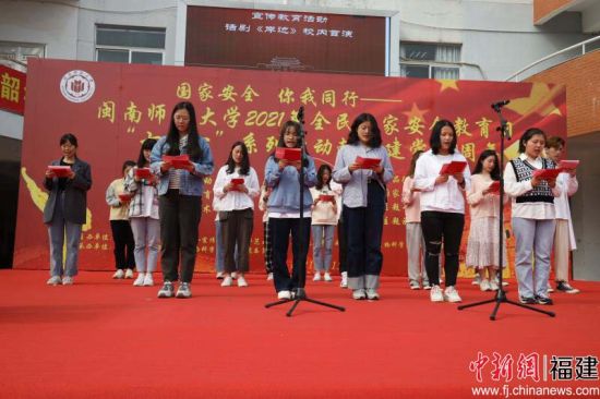 闽南师大相关负责人表示,学校党委高度重视国家安全教育活动,今年全民国家安全教育日,学校紧密结合庆祝中国共产党成立100周年,深入开展国家安全教育进校园主题教育活动。学校充分发挥各宣传阵地作用,积极营造国家安全教育氛围。通过宣传栏、LED、门户网站、微博、微信等平台,利用动画视频、图文等多种形式,加大对国家安全相关知识和法律法规的宣传,积极营造浓厚的国家安全教育宣传氛围。4月14日晚上,学校还推出国家安全主题原创话剧《岸边》,全校师生1100余人观看了话剧。学校通过一系列活动大力提升广大师生的国家安全意识,切实增强防范和抵御安全风险能力,营造“国家安全人人有责”的活动氛围。(完)