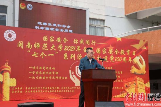 中新网福建新闻4月15日电(林迎熹 廖小文 周婉婷) 4月15日是第六个全民国家安全教育日,当天,闽南师大在达理学生活动中心举行“国家安全,你我同行”——闽南师范大学2021年全民国家安全教育日“七个一”系列活动。闽南师大党委副书记肖庆伟出席活动,学校宣传部、学生处、团委、生物科学与技术学院等单位负责人和师生代表100余人参加活动。