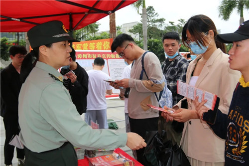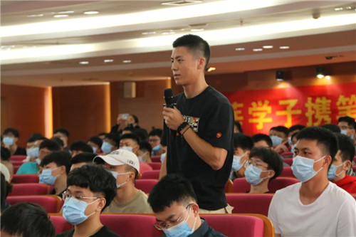 现场还进行征兵政策互动提问,漳州军分区动员处处长陈宙峰、漳州军分区政治工作处主任韩少华、漳州市公安局治安管理支队四级高级警长王朝湖共同为同学答疑解惑,现场同学们就入伍条件、报名流程、漳州本地入伍优惠政策等踊跃提问。