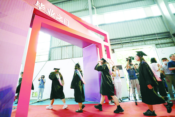 6月23日,闽南师大毕业典礼上,毕业生们大步走过毕业之门。本报记者 黄子君 摄