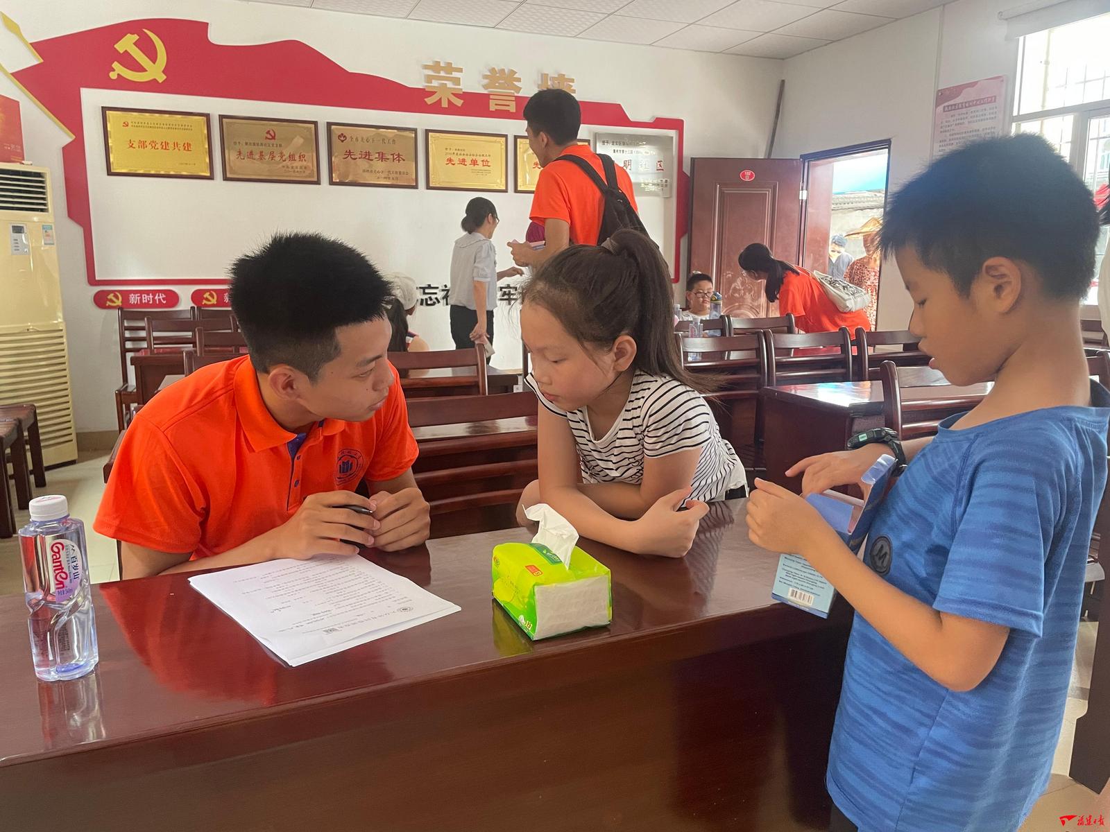 “我喜欢打篮球,和同学在我们村部打球。”7月8日上午,在龙文区郭坑镇铁路社区的近邻党建服务中心,来自闽南师范大学体育学院的大一学生雷旺凯与郑仲淇小朋友在活动间隙聊天对话。