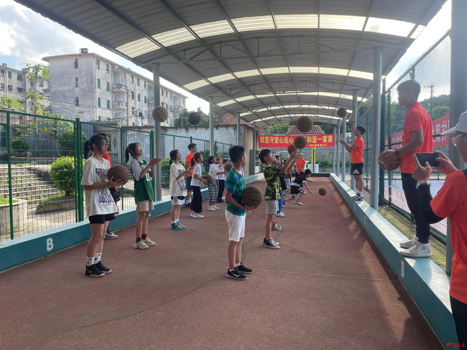 同样在该镇铁路社区篮球场上,闽南师范大学体育学院的大学生们正在给该镇的小朋友辅导篮球技巧的上课片段。而这些只是该镇与闽南师范大学体育学院合办的乡村振兴“动”起来体育运动公益体验班中众多温馨画面的一幕。