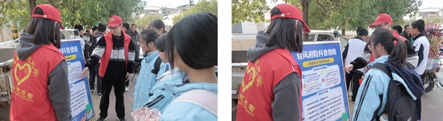 龙海区隆教乡红星村地处闽南地区,常受台风影响,暴雨天气频发。为增强村民的台风防范意识,实践团特此开展台风避险科普活动。在此次活动中,实践团通过设置台风科普展板,为村民们普及台风来临时的安全避险知识、预警信号识别及应急避难措施等内容,以此进一步提升村民的防灾减灾意识和应急应对能力,为建设安全、和谐的红星村贡献力量。
