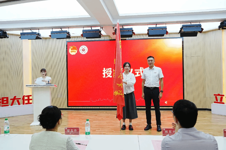 仪式上,闽南师大校团委志愿者服务队负责教师介绍“青春领航・拔尖赋能”专项志愿服务队的成立背景、人员构成与服务规划。随后,闽南师大社会合作处处长陈志宏为“青春领航・拔尖赋能”专项志愿服务队授旗。在全场人员见证下,志愿者代表郑重接旗。