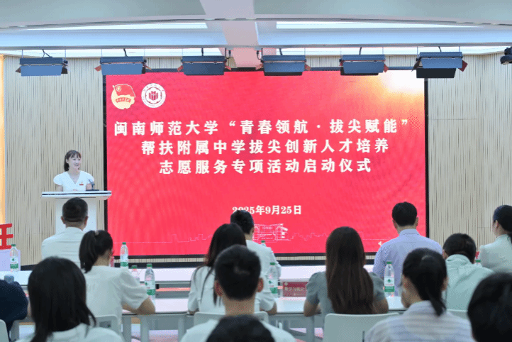 近日,闽南师范大学“青春领航・拔尖赋能”帮扶闽南师大附中(漳州二中)拔尖创新人才培养志愿服务专项活动启动仪式在闽南师范大学举行。本次活动由闽南师范大学社会合作处、共青团闽南师范大学委员会与南师大附中(漳州二中)联合主办。