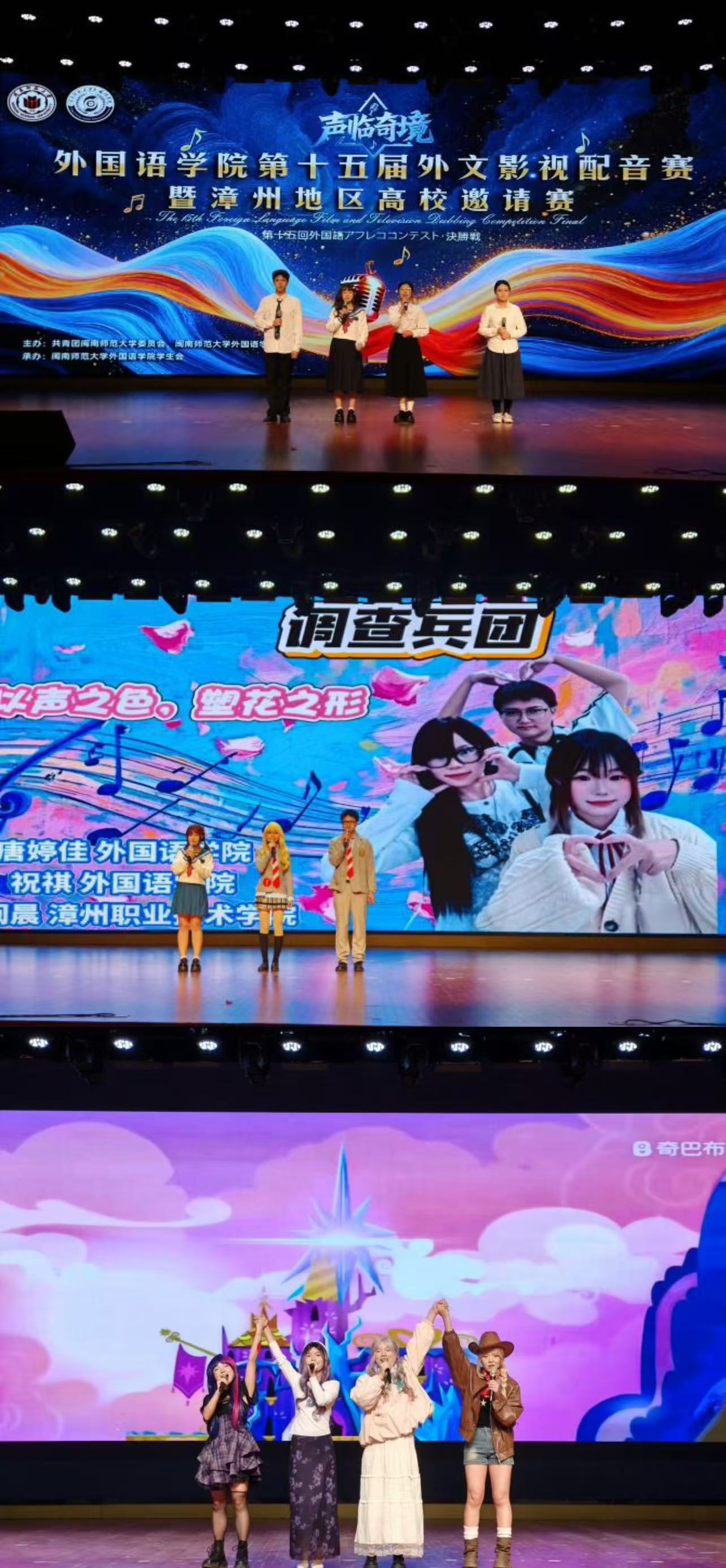 “外文影视配音赛”作为闽南师大外国语学院深耕十五载的校园品牌活动,本次通过向漳州地区各高校发出邀请,推动漳州高校之间外语教学与美育实践深度融合,各校学子在交流互鉴中提升外语应用能力,在文化碰撞中增强文化自信。未来,本项赛事将持续搭建“新时代外语人才培育”校际交互平台,为区域外语教育高质量发展、中华优秀文化国际传播注入青春动能。
