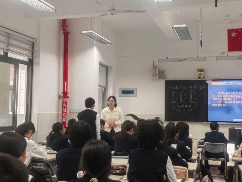 签约仪式结束后,马克思主义学院2025级思想政治教育专业硕士研究生叶琳珊和张淑艳担任主讲人,在漳州三中初中部开展“思政送教”活动,通过课堂讲解、情景演绎与互动分享等多种形式,与学生进行深入交流。