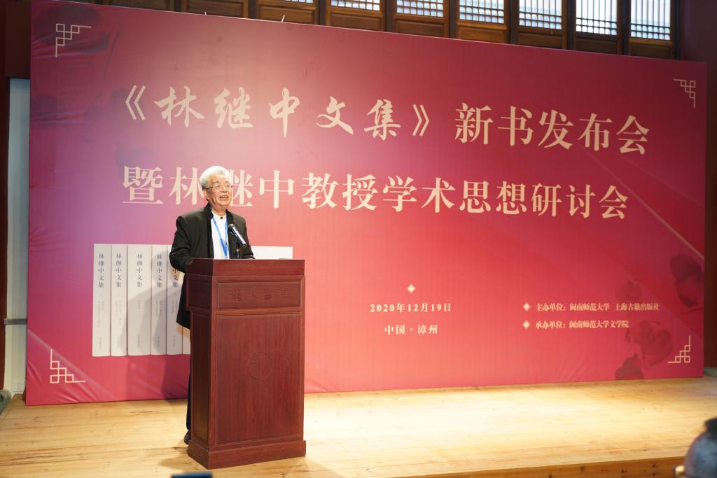 12月19日,由我校与上海古籍出版社联合举办的《林继中文集》新书发布会暨林继中教授学术成果研讨会在漳州长泰龙人古琴文化村举行。来自全国各地的专家、学者,林继中先生同窗、好友、学生、家属以及社会各界人士和文学院师生150余人齐聚一堂,共同见证新书发布。发布会由文学院院长黄金明主持。