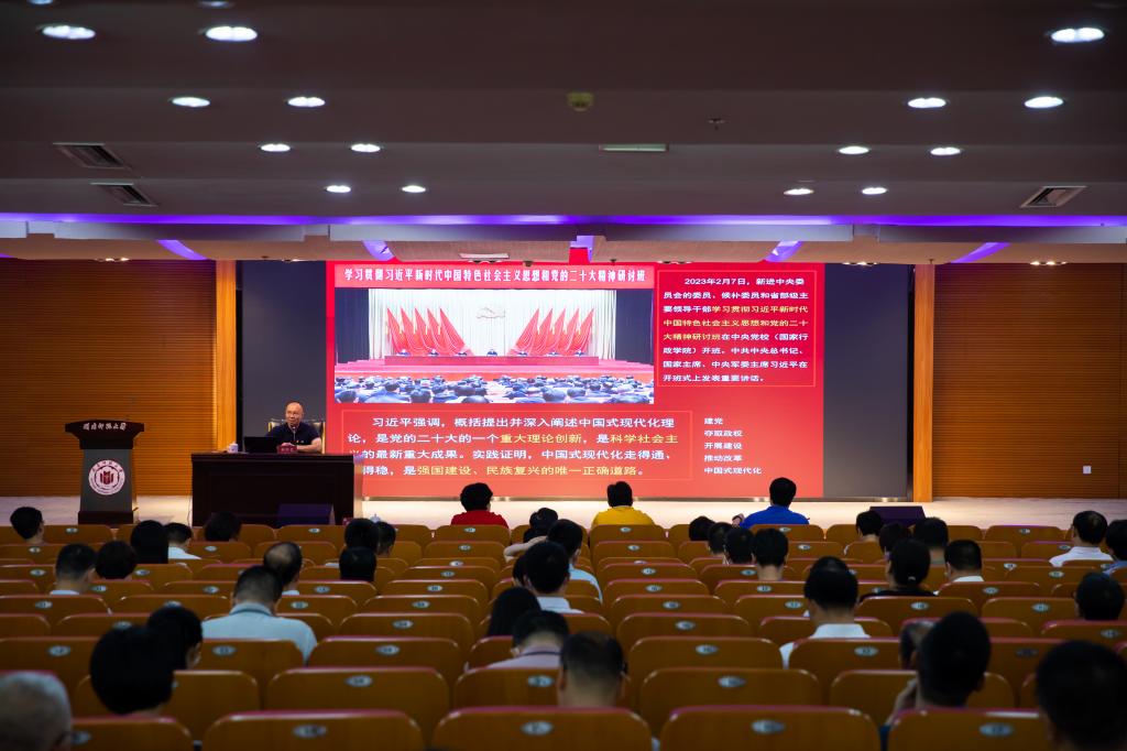 华侨大学马克思主义学院博士生导师林怀艺教授应邀作题为《以中国式现代化全面推进中华民族伟大复兴——学习贯彻党的二十大精神》的专题辅导报告。林教授围绕学习贯彻党的二十大精神,深入阐释了中国式现代化的领导核心、根本遵循、共性和中国特色、本质要求、重大原则、文化底蕴、践行路径及美好愿景。