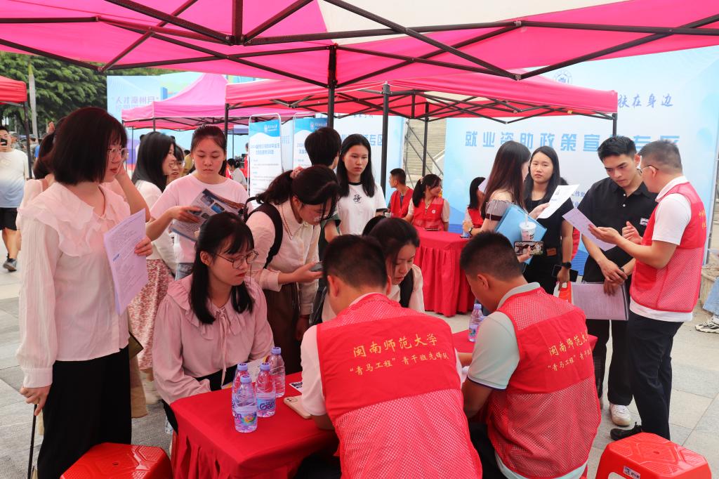 此次双选会由漳州、厦门、泉州、龙岩和三明市人社局、中共漳州市委人才办及闽南师范大学共同举办,据不完全统计,校内外3000余名毕业生现场求职,招聘企业收到简历4000余份,初步达成就业意向755人。