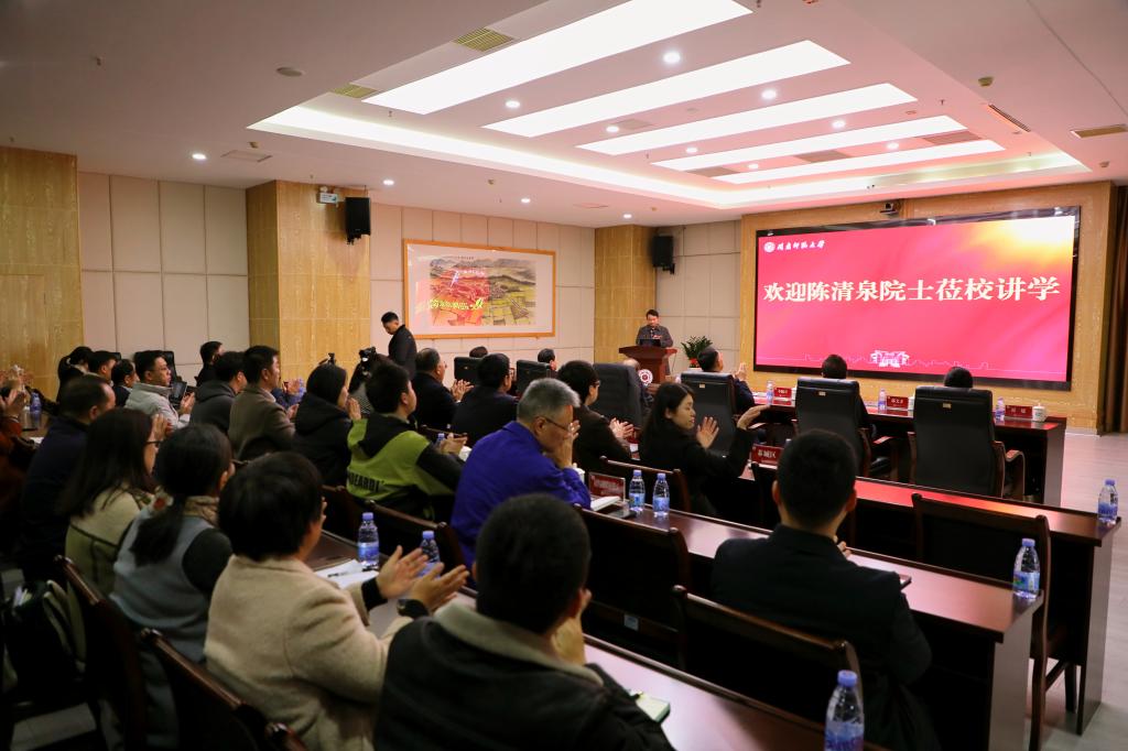 12月22日,中国工程院院士、感动中国2022年度人物陈清泉先生做客闽南师范大学“院士大讲堂”,为我校师生作《涵养科学精神,能源革命和汽车革命新征程》的专题报告。校党委书记吴彬镪,党委副书记、校长李顺兴,漳州市副市长洪泰伟出席。讲座由校党委常委、副校长张龙海主持。