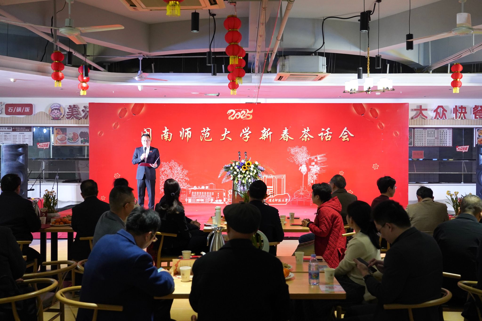 张龙海代表学校向全校师生员工、离退休老同志、海内外校友以及长期以来关心支持学校发展事业的各级领导和各界朋友致以诚挚的节日问候和美好的新春祝福。他表示,回顾2024年,学校以习近平新时代中国特色社会主义思想为指引,以思想伟力领航奋进之路,以改革创新书写发展之绩,以服务保障温暖师生之心,在党建、科研、教学、国际合作等方面取得显著成果。展望2025年,学校将以更高站位谋划发展,凝聚全体闽南师大人的力量;以更大力度推动改革,在学科建设、人才培养、科研合作等多领域深耕;以更实举措践行宗旨,推动解决一批发展所需、改革所急、基层所盼、民心所向的问题,不断提升师生幸福感。
