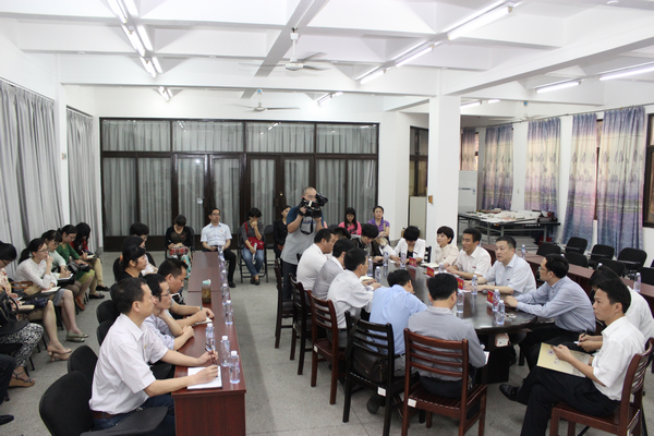 4月20日下午,我校在艺术学院会议室召开思想政治理论课及形势与政策课教学座谈会。校党委书记林晓峰、党委副书记吴彬镪、副校长李顺兴、校长助理林静华出席会议,组织部、宣传部、学工部、研工部、教务处、马克思主义学院等相关单位负责人、思政课教师及政工干部代表参加了座谈会。会议由吴彬镪副书记主持。