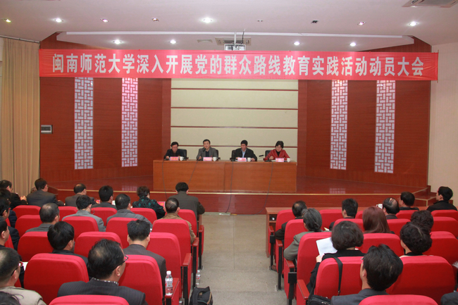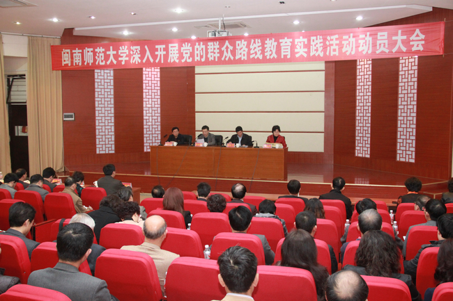 校党委书记、校教育实践活动领导小组组长林晓峰同志从四个方面对党的群众路线教育实践活动进行了动员与部署。一要统一思想,深刻认识教育实践活动的重大意义。林书记指出,对于这次教育实践活动、对于改进工作作风,中央态度是严肃的,决心是坚定的,社会关注和群众期盼都很高。我们有必要联系学校实际,进一步提高对新形势下开展教育实践活动的全局性、战略性重要意义的认识,使全体党员切实在思想上、政治上、行动上与党中央保持高度一致。我们要通过深入开展党的群众路线教育实践活动,凝魂聚气、强基固本,为学校在新起点上的新发展凝聚起不竭的源动力、大智慧和正能量。二要抓住关键,准确把握教育实践活动的目标要求。要突出“为民务实清廉”主题,全心全意为师生排忧解难;要聚焦作风建设,集中解决形式主义、官僚主义、享乐主义和奢靡之风这“四风”问题;要牢牢把握 “照镜子、正衣冠、洗洗澡、治治病”的总要求,以整风精神开展教育实践活动,坚持自我净化、自我完善、自我革新、自我提高,努力在解决作风不实、不正和行为不廉上取得实效。林书记强调,全校开展实践活动要紧紧抓住“强化‘四型建设’,深化‘两项改革’,深入实施‘四大工程’,建设特色鲜明、多学科协调发展的师范大学”这一实践载体和“树正气,提振党员干部精气神;聚人气,提高师生满意度;鼓士气,提升学校竞争力”这一实践目标,使活动取得有效度、有力度、有高度的实践成果。三要统筹推进,确保教育实践活动有序开展。本次教育实践活动不分阶段、不搞转段,在方法步骤方面安排三个环节:第一环节要打牢“学习教育、听取意见”这个基础,第二环节要抓住“查摆问题、开展批评”这个关键,第三环节要强化“整改落实、建章立制”这个根本。他要求全校各级党组织和党员干部要严格按照学校的教育实践活动《实施方案》要求,将三个环节贯通衔接起来,贯穿于活动全过程,着力抓好重点任务的落实。四要精心组织,确保教育实践活动扎实有效。他强调开展教育实践活动,是当前的首要政治任务,全校各级党组织和党员、干部要高度重视,加强领导,精心组织,确保活动扎实推进、取得实效。