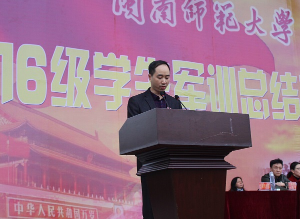 表彰会上,教务处处长翁文宣读了军训表彰决定,校学工部部长、校人民武装部部长林致远对军训工作进行了回顾和总结,外国语学院2016级学生王芊霓代表全体参训学生发言。出席大会的领导还为23个军训先进集体、387名军训积极分子颁发了奖牌和荣誉证书。