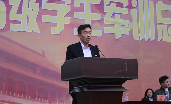 校党委副书记吴彬镪发表了热情洋溢的讲话。他向圆满完成军训任务的全体2016级学生表示祝贺,对承担训练工作的90多名教官表达衷心的感谢和崇高的敬意。他充分肯定了此次军训的成果,指出大学生军训是进行爱国主义教育,加强国防后备力量建设的时代要求,是推动学校“立德树人”育人工作有效举措。他希望学生们将军训严格规范、甘洒汗水的精神和勇气长期保持,延续到今后的学习生活中去。他要求学生们明确历史使命,坚定爱国信念,激发振兴中华的自信心和责任感。积极投身国家发展事业,为国家富强和民族复兴努力奋斗;积极弘扬长征精神,“不忘初心”,“砺志笃行”,不断超越自我,走好新时期的长征路;积极修身养德,把当代青年的崭新形象树起来,争当文明使者;积极投身志愿服务,共同推动文明校园建设。