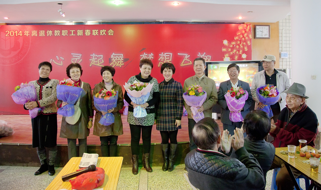 1月5日上午,“离退休老同志2014年‘心灵起舞 梦想飞翔’新春联欢活动”在综合楼一楼老干部活动中心温馨举办。老同志齐聚一堂为2013年新退休的同志举行了简朴而热烈的欢迎仪式,为今年过生日的老寿星们举行集体祝寿活动,送上生日的祝福。联欢会上,老同志们表演了独唱、小组唱等节目,在温暖如春的气息中,在浓浓的喜庆氛围中接受新年的祝福,感受新年的欢喜,祈愿国富民强,中国梦圆。