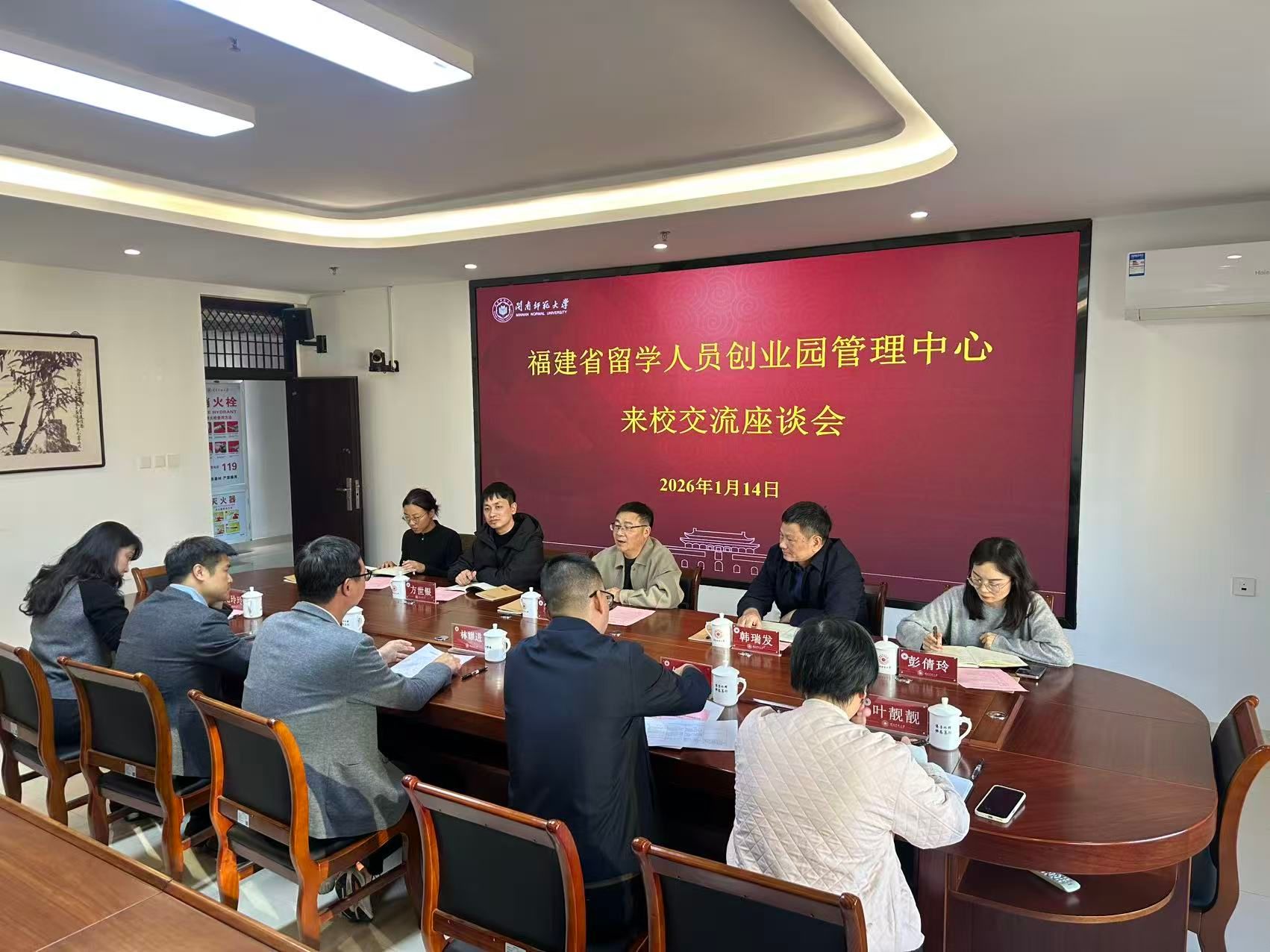 1月14日,福建省留学人员创业园管理中心一行来我校调研。校党委常委、副校长林耀进与中心主任王日洲参加调研座谈会,就海外人才引进与合作开展交流。