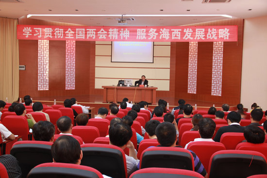 王开明院长的报告立意高远,分析深入浅出,讲解系统深刻,使大家对全国两会精神有了更深入的理解,进一步增强了我校服务福建省科学发展、跨越建设发展的信心。