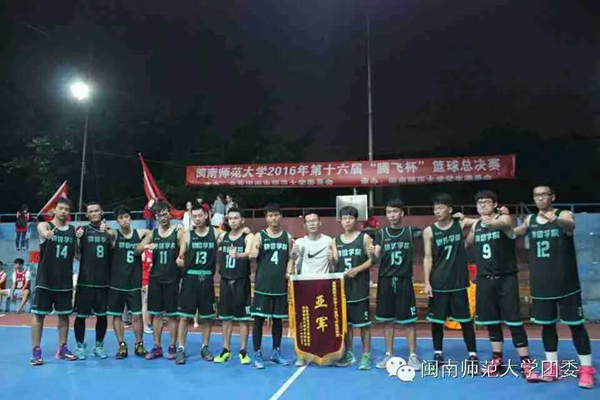 腾飞杯篮球赛于4月22日拉开序幕,经过小组赛,八强赛,四强赛的激烈角逐,最终,商学院摘得桂冠,物信学院荣获亚军,新传院获季军,计算机学院获道德风尚奖,商学院10号球员庄家灿获mvp荣誉称号。比赛由校团委主办,校学生会体育部承办。