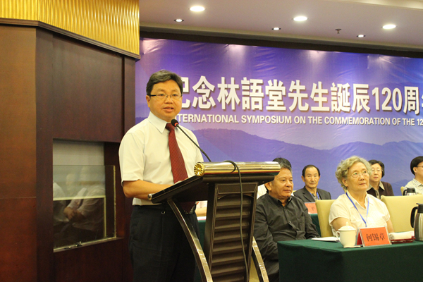 校党委书记林晓峰在致词中表示,长期以来,学校注重发掘地方历史文化资源优势,重视发展闽南文化特色学科专业群,全面推进闽南文化与两岸交流研究的“三个一工程”,形成了鲜明的闽南文化办学特色。他说,林语堂先生是中华文化的传播使者,也是闽南文化的传播使者。闽南师范大学始终坚持把林语堂先生及其学术思想和爱国情怀研究作为学校闽南文化与两岸交流研究的重要组成部分。目前,学校正在着手编撰国内外第一部资料完备准确、格式体例规范的《林语堂全集》和《林语堂研究资料》;积极努力与当地政府、社会贤达协调筹建“林语堂与闽南文化研究院”,着力培养和建立一支高素质的林语堂与闽南文化研究的后备力量,自觉承担起推进林语堂与闽南文化研究、促进两岸文化交流的社会历史责任。