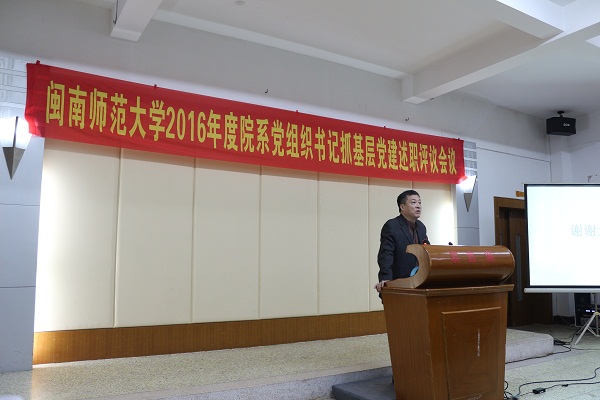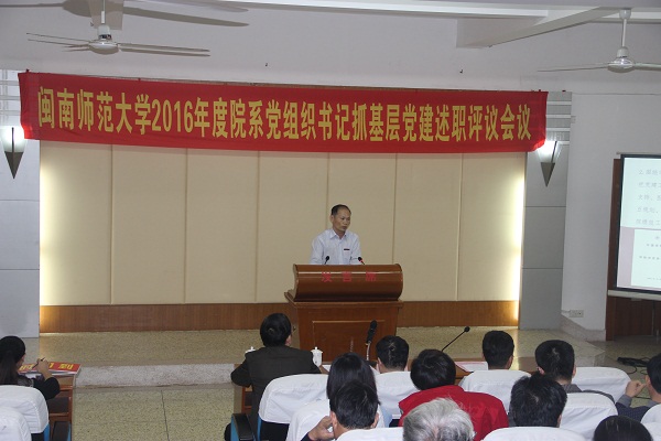 根据中组部、省委组织部、教育部党组和省委教育工委关于开展2016年度高校院系级单位党组织书记抓基层党建工作述职评议考核的通知要求,1月5日下午学校党委在逸夫楼三楼梯教召开了2016年度二级院系党组织书记抓基层党建述职评议会议。全体在校党委委员、党务部门与群团组织主要负责人、部分行政部门主要负责人、二级院系党组织书记(副书记)、党务秘书出席了会议,并邀请部分“两代表一委员”、学院院长(系主任)、基层党员干部和学生党员代表参加。述职评议会由校党委副书记吴彬镪主持。