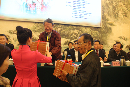 开幕式上还举行了《歌仔戏(芗剧).邵江海研究》 赠送仪式以及邵江海嫡传弟子纪招治收徒仪礼。中华全国台湾同胞联谊会会长汪毅夫、海峡两岸文化发展研究中心主任王耀华分别为邵魁式先生、台湾戏曲学院以及省艺术研究院、厦门市台湾艺术研究院、漳州市图书馆、漳州市戏剧研究所、龙海市戏剧研究所等个人和单位赠送《歌仔戏(芗剧).邵江海研究》专籍。《歌仔戏艺术(芗剧). 邵江海研究》一书由闽南师范大学党委书记林晓峰主编,该书选取两岸30多位歌仔戏(芗剧)研究专家和邵江海及其嫡传弟子的40多篇文章,分《歌仔戏(芗剧)》、《邵江海论歌仔戏(芗剧)》、《邵江海论》三辑,是首部研究一代宗师邵江海与海峡两岸歌仔戏(芗剧)艺术的专著。