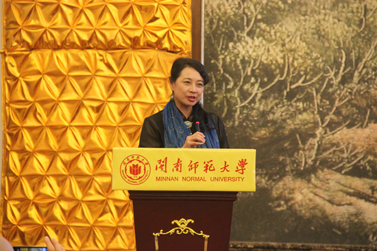 闽南师范大学党委书记林晓峰在致辞中说,长期以来,闽南师范大学注重发掘地方历史文化资源优势,深化推进闽南文化与两岸交流“三大工程”,始终坚持把歌仔戏(芗剧)艺术及其“一代宗师”邵江海研究作为学校闽南文化与两岸交流研究的重要组成部分,积极推动包括歌仔戏(芗剧)在内的戏剧艺术的传承创新工作。在自觉承担起促进两岸文化交流的社会历史责任的过程中,闽南师范大学已发展成为两岸不可或缺的歌仔戏(芗剧)研究和艺术人才培养的重要基地。