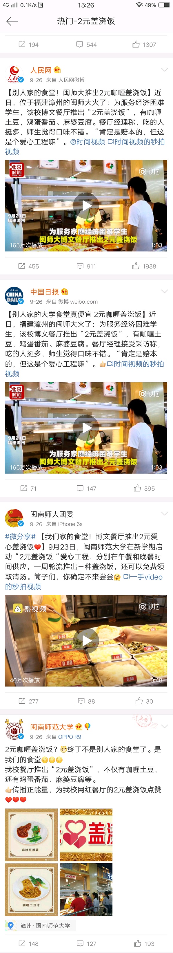 “2元盖浇饭”系列套餐推出以来,得到我校广大师生的肯定和赞誉。副校长蒋一婷亲自到食堂了解“2元盖浇饭”爱心用餐工程实施情况,听取师生对此项爱心用餐工程的意见。学生们也自发将这一“爱心信息”发布到网络平台,获得许多网友点赞。同时,也有许多学生表示要把这样的机会让给需要得到帮助的困难学生,真正体现这项爱心工程的价值和意义。