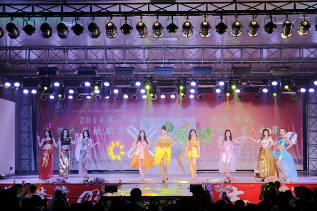 6月8日晚,由校学生处、校团委主办的2014年“感动校园人物”颁奖典礼、第九届校园环保服装设计暨模特大赛决赛在龙文馆举办。校党委副书记林春生,校长助理、学生处处长林静华,学生处、校团委相关领导,各学院党总支领导、团委书记等出席活动现场。活动还邀请了校内外相关专业老师担任活动评委。