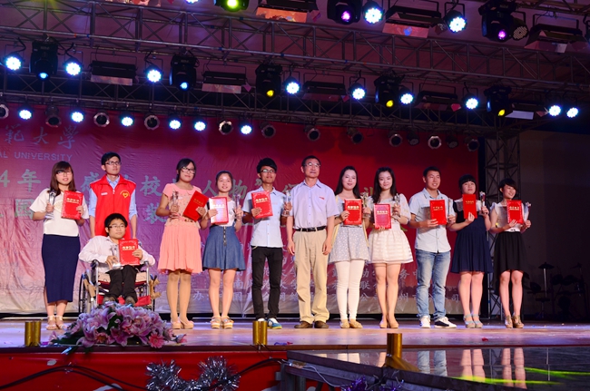 晚会首先进行了“感动校园人物”颁奖典礼。此次评选活动自4月份开始,历时两个月,以“实践中国梦,传递正能量”为主题,经过各学院认真推荐、广大学生积投票、两轮展示评选后,物信学院的蔡秋、管理学院的林茜茜、新闻学院的方瑶等10人获得感动校园人物称号。另外来自外国语学院的张思琪、吴彩华,生科院的张薇等10名同学荣获感动校园人物提名奖。