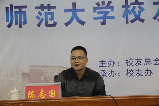 而后,陈志国校友发表了题为“年轻,允许折腾”的演讲。回顾过去十几年的就业、创业经历,陈校友娓娓道来,有任教一年便辞去工作的毅然,有赴厦门寻找工作机会的苦闷辛劳,也有担任销售人员、遭遇拒绝和冷漠之后的感想;最重要的是年轻的奋斗而获成功的喜悦。陈校友告诉同学们,做事目标要明确,方向性的准确选择尤为重要,在这基础上坚持、奋力“折腾”,才能不停地前进。演讲最后,陈校友还介绍了自己的公司,以期能够在今后加强校企合作交流。