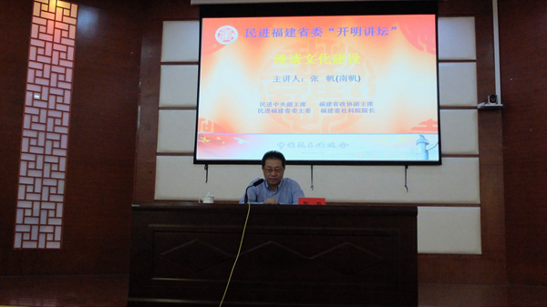 5月17日下午,民进福建省委“开明讲坛”在我校举行。民进中央副主席、省政协副主席、民进省委主委、省社科院院长张帆教授莅临我校作题为《漫谈文化建设》专题讲座。福建省委会专职副主委郑家建、民进省委组织处处长林龙金、民进省委社会服务处副调研员林华东,我校党委书记林晓峰、副书记吴彬镪、副校长肖庆伟,漳州市委统战部部务会成员曾黄河调研员、民进漳州市委会领导、我校统战部长欧阳红红,省市民进会员以及我校各民主党派代表聆听了讲座。讲座由副校长肖庆伟教授主持。