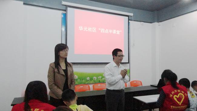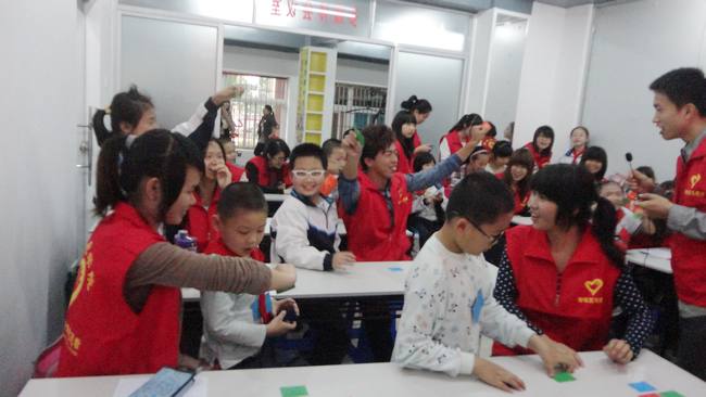 为了更好地解决每周三下午小区内部分小学生家长无暇顾及四点半放学孩子的教育管理问题,共同关爱和服务儿童成长、成才,漳州团市委联合华元社区“四点半学校”与我校管理系青年志愿者一起合作,开办了免费课堂教育活动,义务为小学生们授课、辅导作业。4月18日,华元小区“四点半课堂”进行首日课程——心理拓展游戏“神秘之旅”。当日共有21名小学生和我校管理系23名志愿者一起参加。