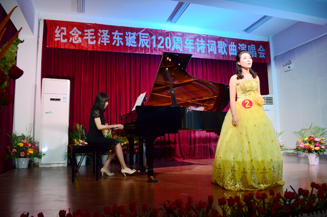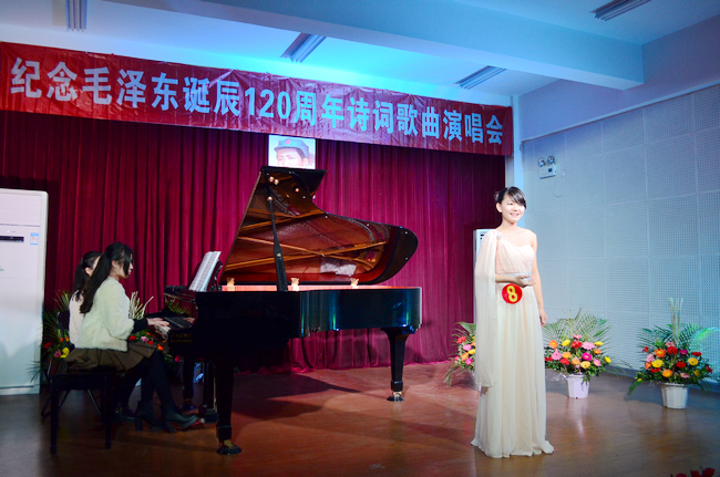 12月19日晚,由多部门联合举办的纪念毛泽东诞辰120周年诗词歌曲演唱会在艺术系习奏习唱厅拉开帷幕。关工委副主任邱煜焜老师应邀到场并担任评委。
