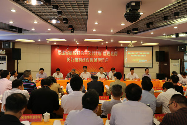 4月25日上午,福建省高校社会主义核心价值观教育长效机制建设现场推进会在我校举行。福建省委教育工委副书记杨江帆,省教育厅思政处处长叶杨,省内各设区市委教育工委(教育局)分管领导,平潭综合实验区社会事业局分管领导;各本科高校、省属高职高专院校分管领导工50余人参加会议,深入探讨贯彻落实中央关于培育和践行社会主义核心价值观的意见,总结交流福建省高校的好经验好做法,推进社会主义核心价值观教育长效机制。