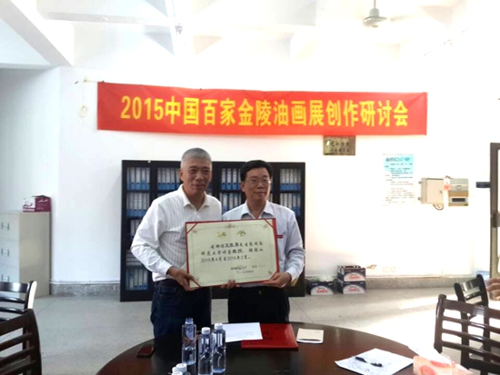 2015年中国百家金陵油画展即将开始。4月1日,艺术学院特别邀请了华侨大学美术学院绘画系金程斌、王振勇等一行人来校进行关于本次油画展创作内容和形式的研讨交流活动。李进金校长参加了相关活动,并为金程斌、王振勇两位教授颁发讲座教授聘任证书。