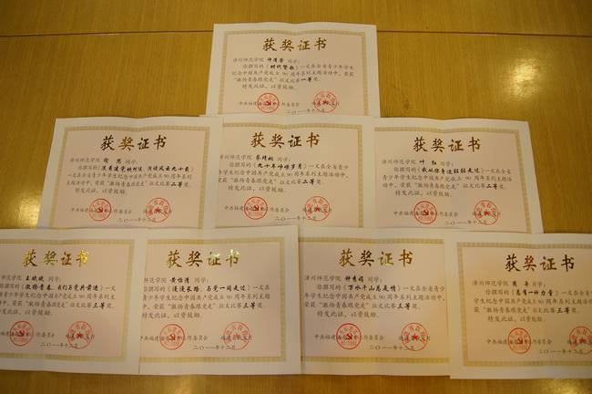根据中共福建省委教育工作委员会、福建省教育厅通知,我校在全省青少年学生纪念中国共产党成立90周年系列主题征文活动中喜获佳绩。