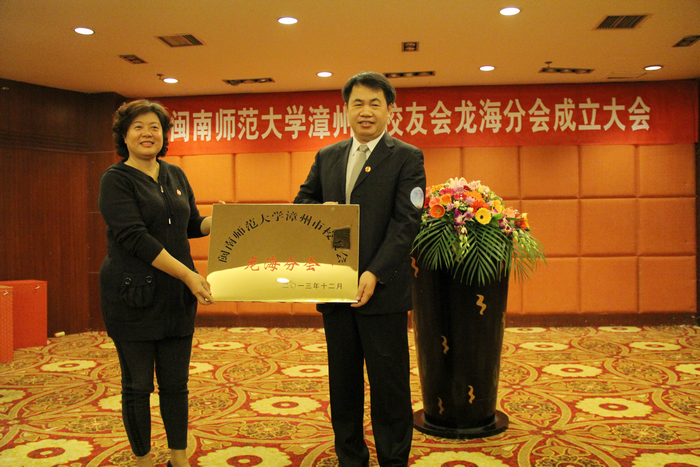 12月15日,闽南师范大学漳州市校友会龙海分会成立大会在龙海隆重召开。来自龙海各界的100多名闽南师大校友欢聚一堂,热烈庆祝龙海校友分会正式成立。省教工委副书记、校友总会名誉副会长刘剑津,校党委书记林晓峰,副书记林春生,副校长蒋一婷,漳州市校友会会长、漳州市政协副主席李惜真以及来自闽南师范大学校友总会和漳州市校友会的校友代表到会祝贺。大会由我校80级校友、龙海市委常委、宣传部部长沈龙石主持。