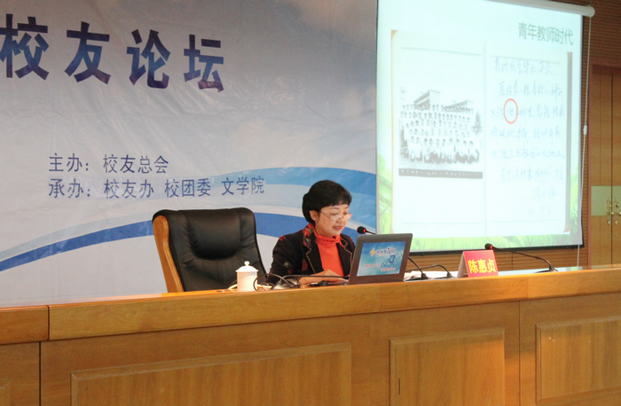 12月6日下午,校友论坛第四讲在逸夫图书馆五楼报告厅举行。本次论坛由我校82届文学院校友、现《闽南日报》社总编辑陈惠贞主讲。校友办、校团委、文学院相关老师,部分院系校友会会长、秘书长以及广大学生一同聆听了讲座。党办(校办)副主任、校友办主任陈超主持了论坛。