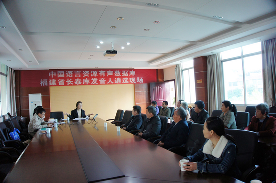 长泰库作为福建语言资源有声数据库项目之一,我校承担了该库的建设工作,并成立了由厦门大学人文学院林宝卿教授为专家的我校4人调查团队。长泰县教育局也成立了“福建语言资源有声数据库(长泰库)建设”领导小组,经过广泛宣传发动,公开征招、多方寻找等方式,初步筛选出27位候选人。