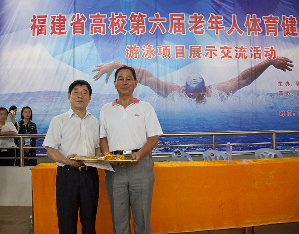 9月24日,由我校承办的“福建省高校第六届老年人体育健身大会游泳项目展示活动”在我校游泳馆隆重举行。来自厦门大学、华侨大学、集美大学、泉州师范学院等15所高校代表队的110多名老年运动员齐聚我校,遵照“共圆康乐梦”的老年体育精神,秉着“崇尚健康,追求快乐”的活动宗旨,进行了游泳项目的交流展示活动。我校代表队不负众望,取得1金2银4铜的好成绩。