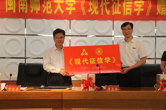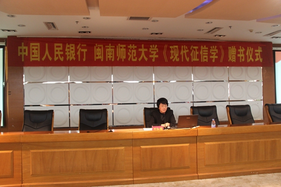 在赠书仪式现场,宋建荣副行长向闽南师范大学赠送《现代征信学》教材,以供闽南师范大学征信理论学习与研究之需。赠书仪式后,人民银行征信管理局何红滢处长为闽南师范大学商学院学生及学校部分助学贷款学生上了以“征信就在你身边”为主题的征信知识专题讲座,受到广大师生的一致好评。