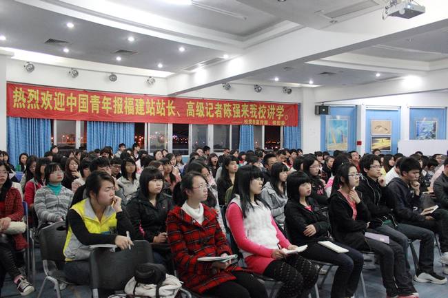 3月21日晚,中国青年报驻福建站站长、高级记者陈强来我校讲学。在达理学生活动管理中心三楼多功能厅为我校新闻系、青年宣传中心、广播台、学通社以及各系青年宣传中心的学生记者,做了题为“二十五年磨一剑——我的记者生涯”专题讲座。
